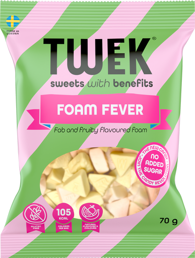 FAB AND FRUITY FLAVOURED FOAM NO ADDED SUGARJOIN THE CANDY REVOLUTIONMADE IN SWEDEN KCAL 120 CALORIES PER BAGGLUTEN FREENATURAL FLAVOURS AND COL...