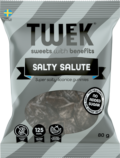 MAGN PER SÖLUEININGU:15 stk The salt licorice favorite Salty Salute - now in it's own bag! For all of you who love the really salty.Made from real ...